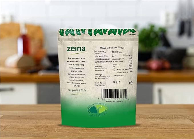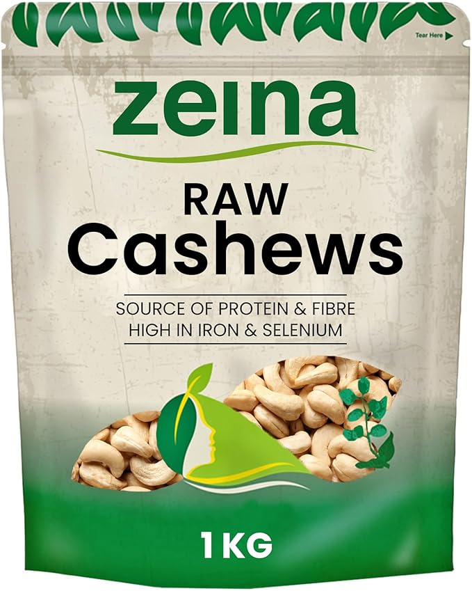 Discover the wholesome goodness of Zeina Raw Cashew Nuts, a 1kg pack of nutrient-rich nuts perfect for healthy snacking, cooking, and baking. Packed in a resealable bag to maintain freshness, these cashews are 100% natural, free from added oil or salt, and produced in a peanut-free and sesame-free environment.