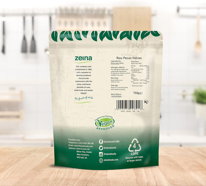 FRESHNESS GUARANTEED: Zeina pecans are packaged in 750g resealable packs to preserve their freshness and flavor, ensuring they stay crisp and ready for your next culinary creation.